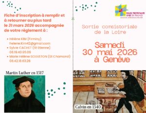 Pour la sortie consistoriale du 30 mai à Genève avec la visite du musée de la Réformation (50 €), inscription possible sur liste d’attente